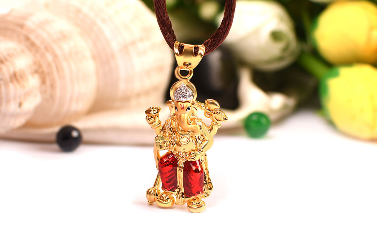 This Fabulous Lalbaugh Raja pendant in simplistic yet elegant design is made in pure 18K gold. Lalbaug's Raja Ganpati, is the most popular form of Ganesha amongst devotees in Mumbai. In this Ganesha becomes a King who fulfills all wishes of the devotee. The magnificence of the pendant lies in illustrative eyes and detailed stone work . This graceful Lord Ganesh pendant is bound to look divine and graceful on you.