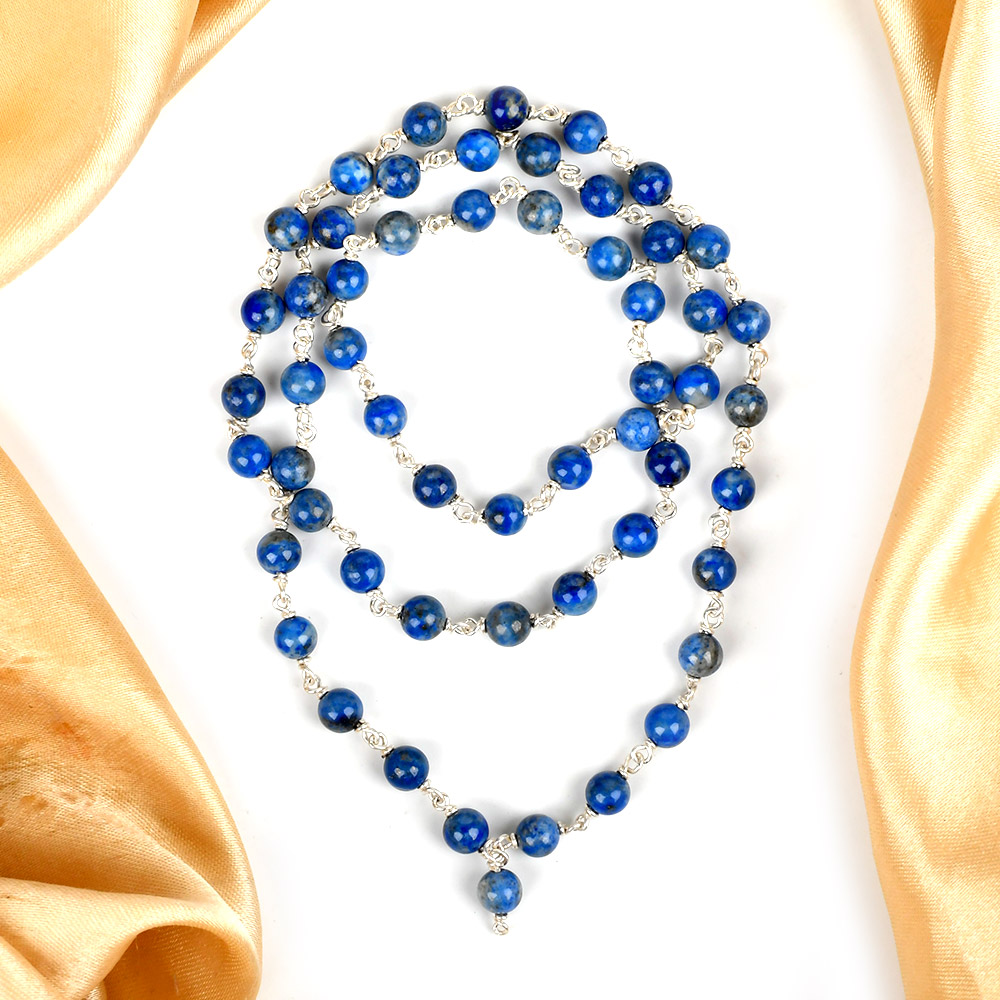This Lapis Lazuli Mala is delicately handcrafted with natural, round faceted beads interlinked using 925 silver wire, giving it a refined yet traditional appeal. The silver wiring adds a graceful contrast to the deep blue of the Lapis, enhancing its natural beauty and lustre.