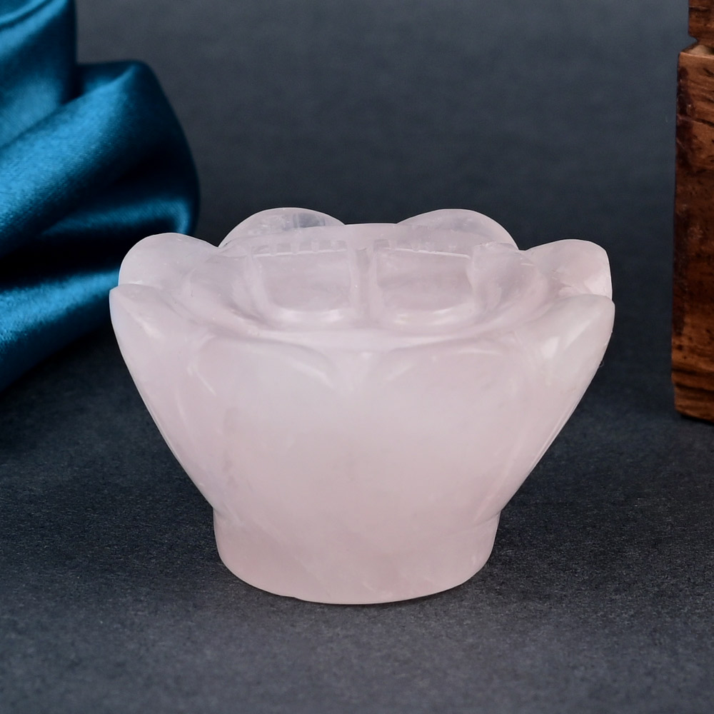 Maa Laxmi Charan on Astadal Padma is made in natural Rose Quartz gemstone to resonate positivity and prosperity. Eight petals Lotus is symbolic of purity and harmony. The footprint of Maa Laxmi is installed in puja altar of your home/place of business or office for blessings of abundance, growth, prosperity and relief from financial problems. Meditating upon this Rose Quartz, Laxmi Charan helps one resonate with energies of compassion, love, trust and acceptance to experience inner fulfilment and contentment.