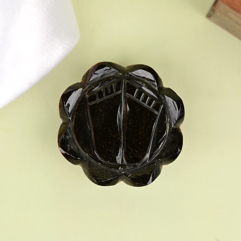 Laxmi Charan etched on Lotus is made in natural Tiger Eye gemstone for divine blessings of Goddess Laxmi. Asta Dal (eight-petal) Lotus is symbolic of self-regeneration, harmony and purity and the footprint of Goddess Laxmi carry 15 sacred symbols associated with prosperity and abundance. Made in Tiger Eye, the Laxmi Charan bestows fortune, wealth and luck and guards the wealth against misfortune. It is ideal to install in the puja altar of your home/office or place of business.