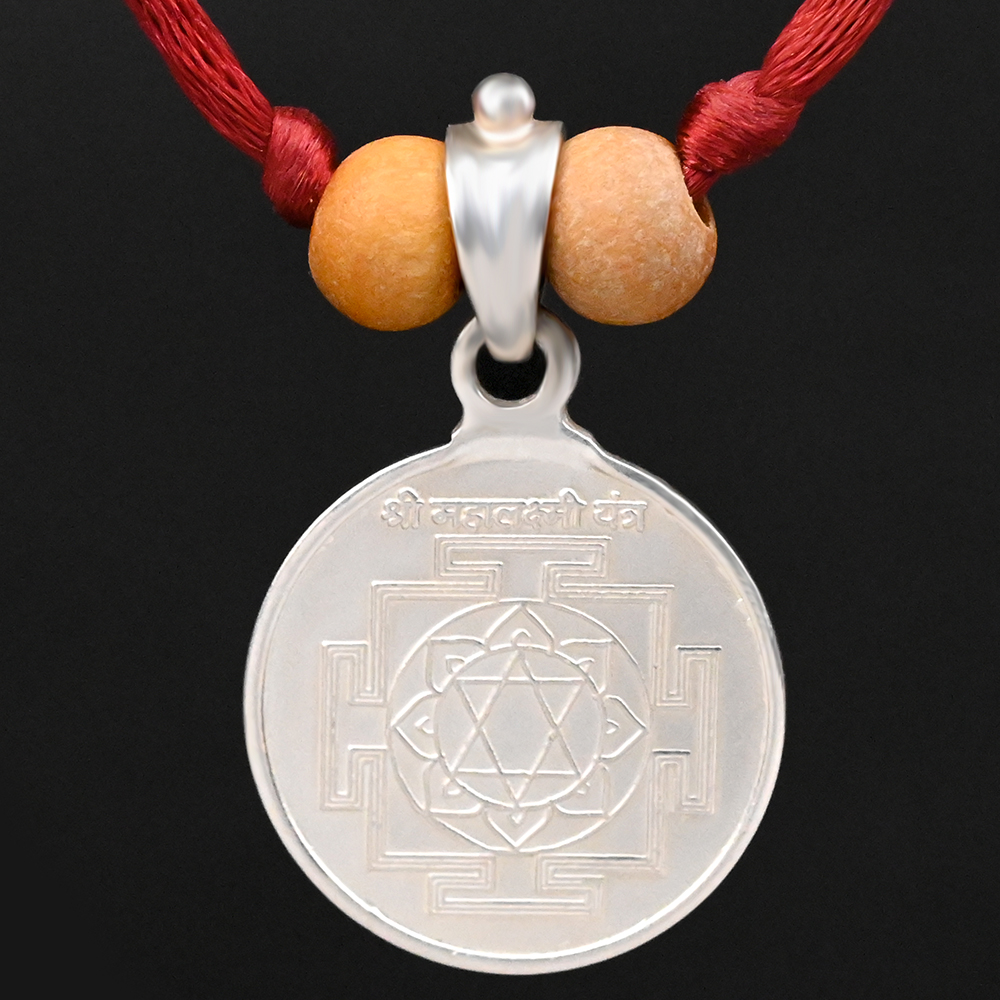 This Mahalakshmi Yantra locket made in pure silver makes a perfect spiritual accessory for Mahalakshmi devotees. The simplistic locket with polished finish and brilliant shine has neat embossing of Mahalakshmi Yantra on the front side and Her image on the reverse side. Adorning this locket regularly helps the wearer connect with the divine blessings of Goddess Lakhmi. The Yantra bestows luck, fortune, abundance, harmony, uninterrupted flow of wealth and positivity and also attracts riches. Read More