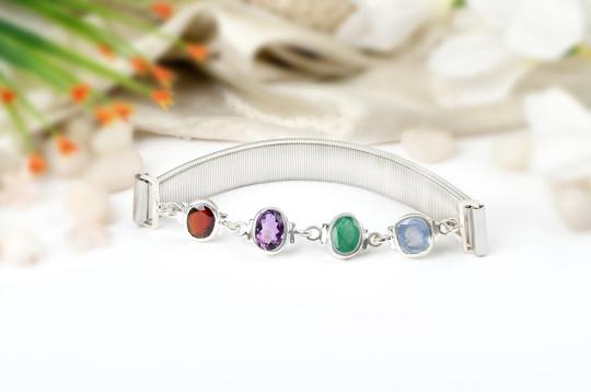 A powerful gemstone bracelet made of Gomedh, Amethyst, Zambian Emerald and Blue Sapphire. All gems are 100% natural and untreated and of 5-6 carats each. This bracelet has all gems that provide luck, love and divine blessings. Facilitates fulfillment of desires in the life of the wearer. All gems are set as per Rudraksha Ratna Chakra Therapy and will give only beneficial results to the wearer irrespective of his planetary position.