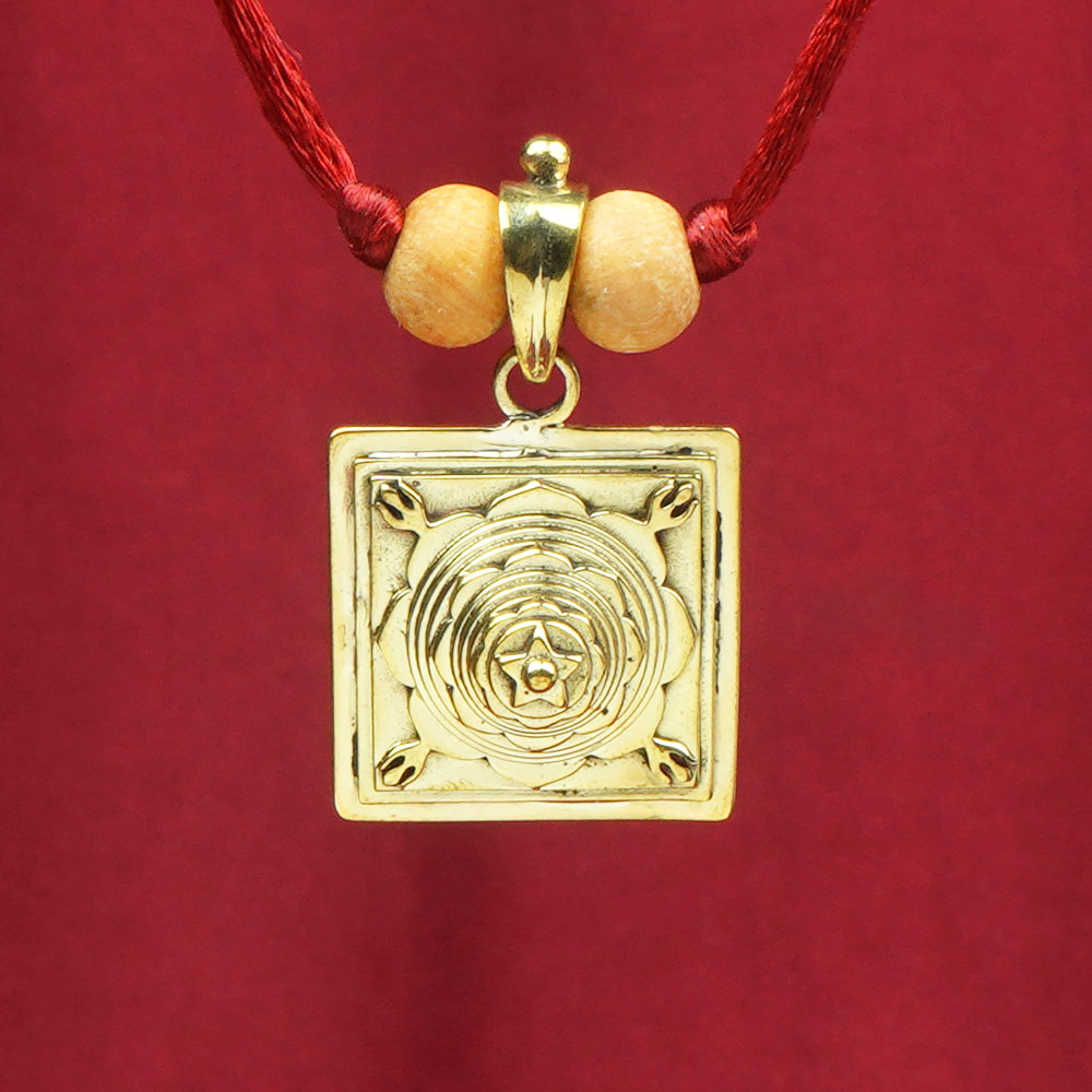 This pendant features the intricately embossed Mahamrityunjay 3D Yantra, cast in gleaming brass and suspended from a traditional red thread with soft orange beads and a golden bail. Its multidimensional design channels the potent vibrations of Lord Shiva’s protective energy. It is crafted inhouse by Rudra Centre artisans.
