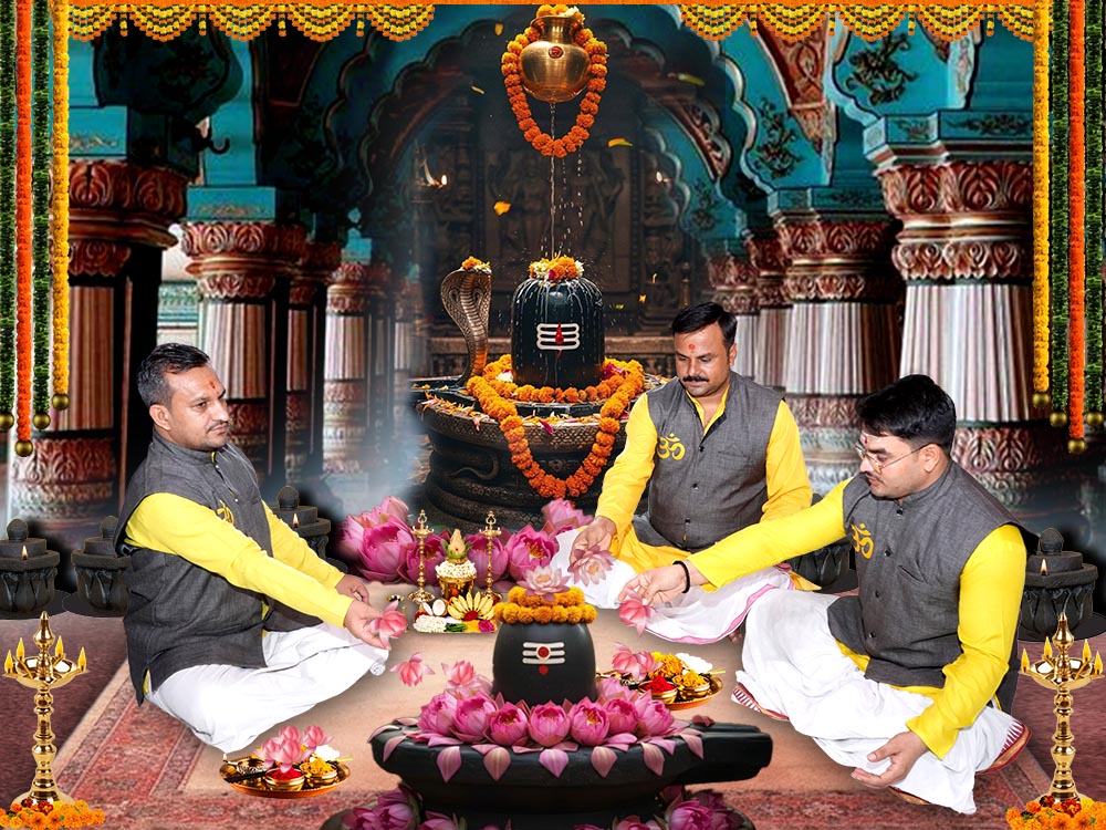 The heart of the ceremony is the chanting of the Mantra Pushpam, where priests and devotees together recite the complete hymn. With each verse, flowers and drops of water are offered into the Kalash, symbolizing the union of devotion and the life-giving element. The sanctified waters are then used for Abhishekam of the Shiva Linga , representing the eternal flow of divine grace. Following this, Brahmins perform 108 Lotus or Flower Offerings, each accompanied by the mantra “Om Pushpeshwaraya Namah”, signifying the blossoming of inner purity and consciousness.