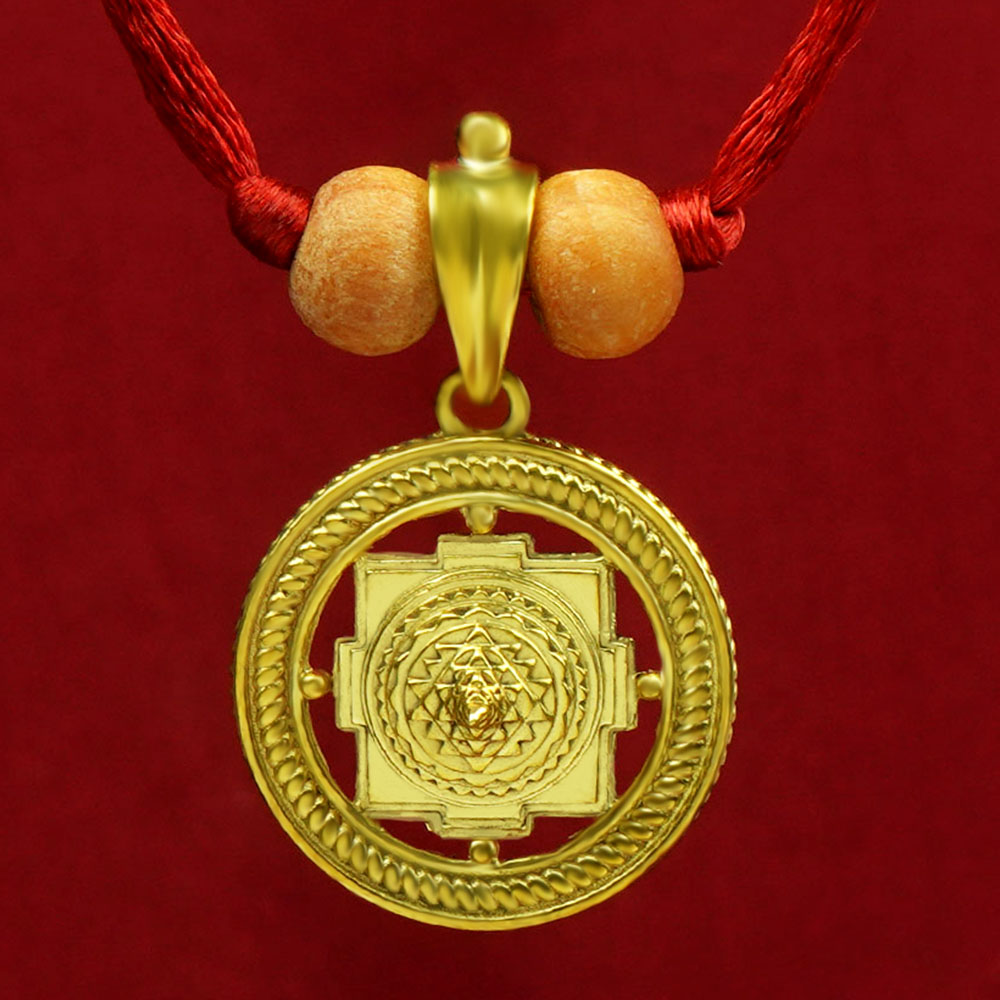 This finely crafted pendant features the sacred Meru Shree Yantra in an elevated 3D design, representing the most powerful and auspicious geometry in the Shakta tradition. Symbolizing the union of Divine Masculine and Feminine energies, it is meticulously made in brass by Rudra Centre’s in-house artisans. The pendant is strung on a durable red macramé cord and paired with smooth wooden beads for a grounded and spiritual finish. Benefit of wearing this yantra: It attracts prosperity, spiritual growth, and positive energy while removing obstacles and aligning the wearer with universal abundance.