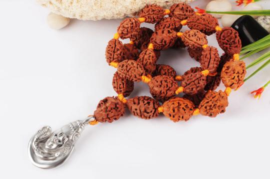 The divine mala comprises high quality two mukhi Rudraksha beads beautifully knotted in yellow silk thread.