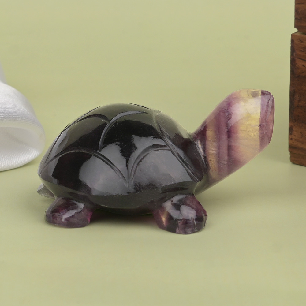 For: Goodluck, harmony and longevity. To be placed on office table/ work desk / living room. This Kurma is carved in pure Multi colour FLUORITE.