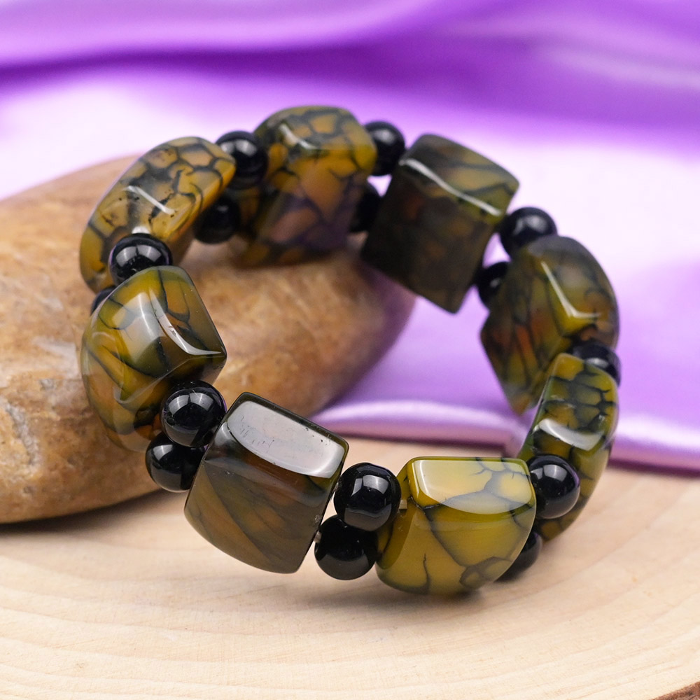 Round and Cushion shape agate beads bracelet in stretch elastic.
