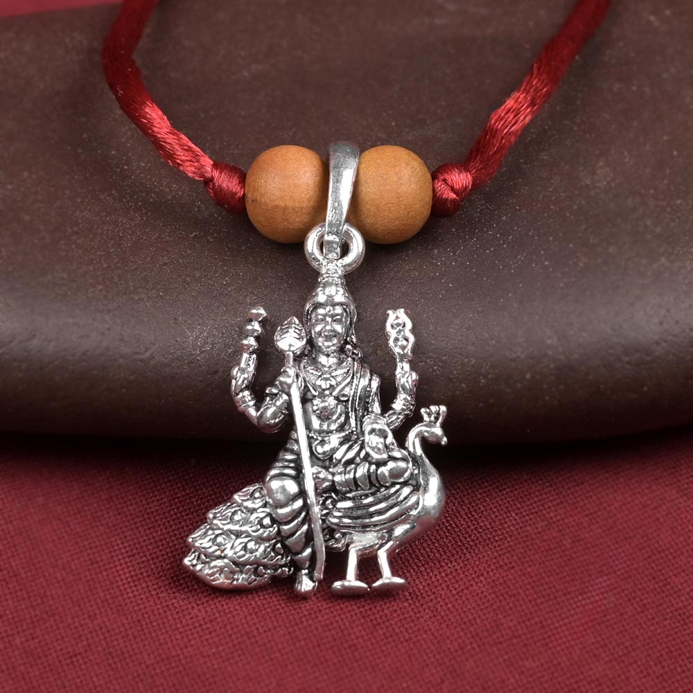 This sacred pendant is crafted from pure 925 silver, featuring a finely detailed depiction of Bhagwan Murugan with a refined luminous finish. The form reflects strength and grace, suitable for daily devotional wear.