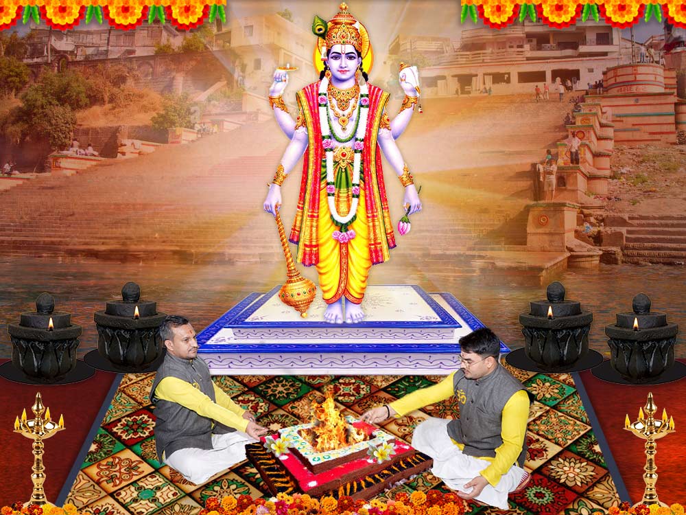 Puja service includes: Pitru Dosh Pooja; Narayan bali shraddh; Nagbali Shraddha; Uttar Kriya for all the Ancestors; Kal-Sarp Dosh Puja; Shrapit Dosh Puja; Vishnu Naman (108 names chanting), Vishnu mantra japa (108 chants), Shodashopchar Narayan Nag puja; Saptadev puja; Narayan Bali recitation, Homa; Cow Puja, 108 Pitra-Tarpan, 11 tarpans of last 3 ancestors, 51 Dev tarpan, 51 Rishi Tarpan, donation to Brahmins.
