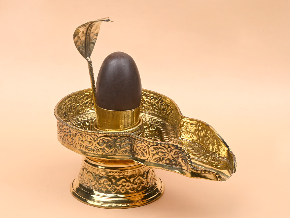 The shivlingam with an intricately designed brass yoni base and a Narmada Lingam adorned with a snake symbolizes the union of Purusha (soul) and Prakriti (material nature). This sacred representation embodies the balance of spiritual and material aspects, reflecting the cosmic harmony and divine interplay between creation and consciousness.