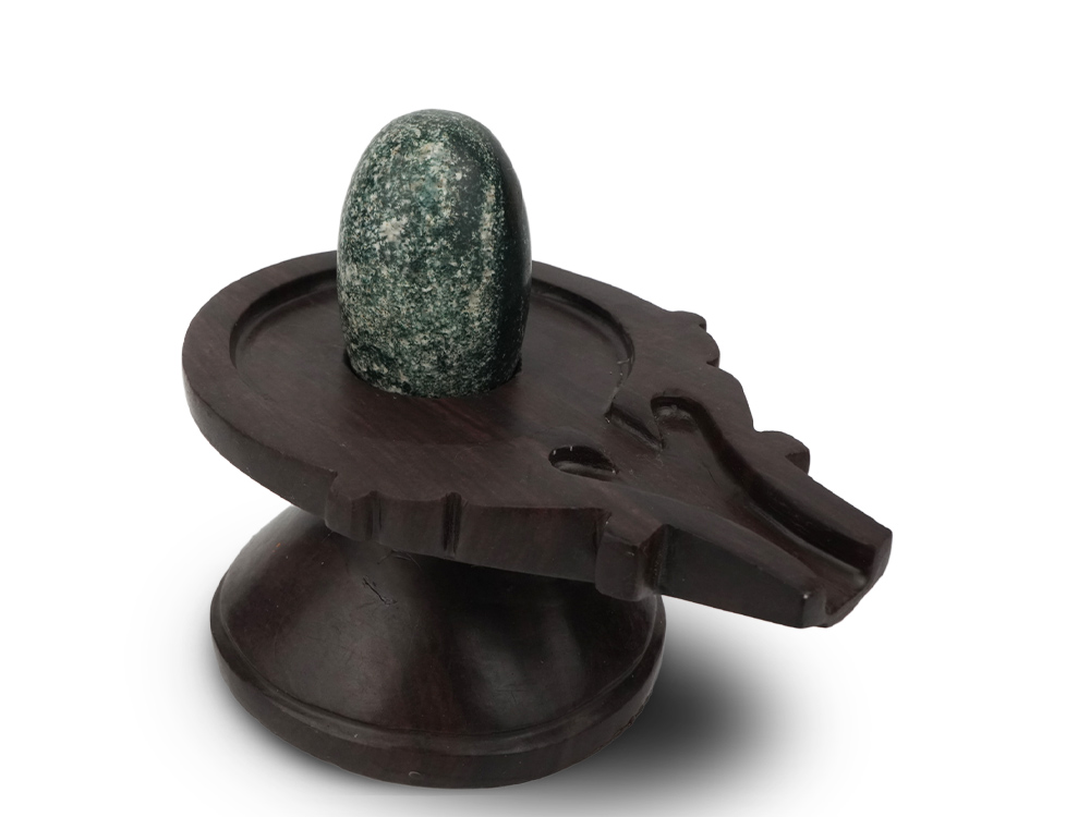 The Narmada Lingam with Stone Yoni Base is a sacred symbol of Lord Shiva, naturally sourced from the revered Narmada River. The smooth, polished Lingam is mounted on a solid stone Yoni base, which features a beautifully carved spout for the sacred flow of Abhishekam water. The dark stone's natural grain and texture enhance its divine presence, making it ideal for daily worship and meditation. Worshipping the Narmadeshwar Lingam is believed to bestow spiritual growth, harmony, and protection, inviting the blessings of Lord Shiva into one’s life.
