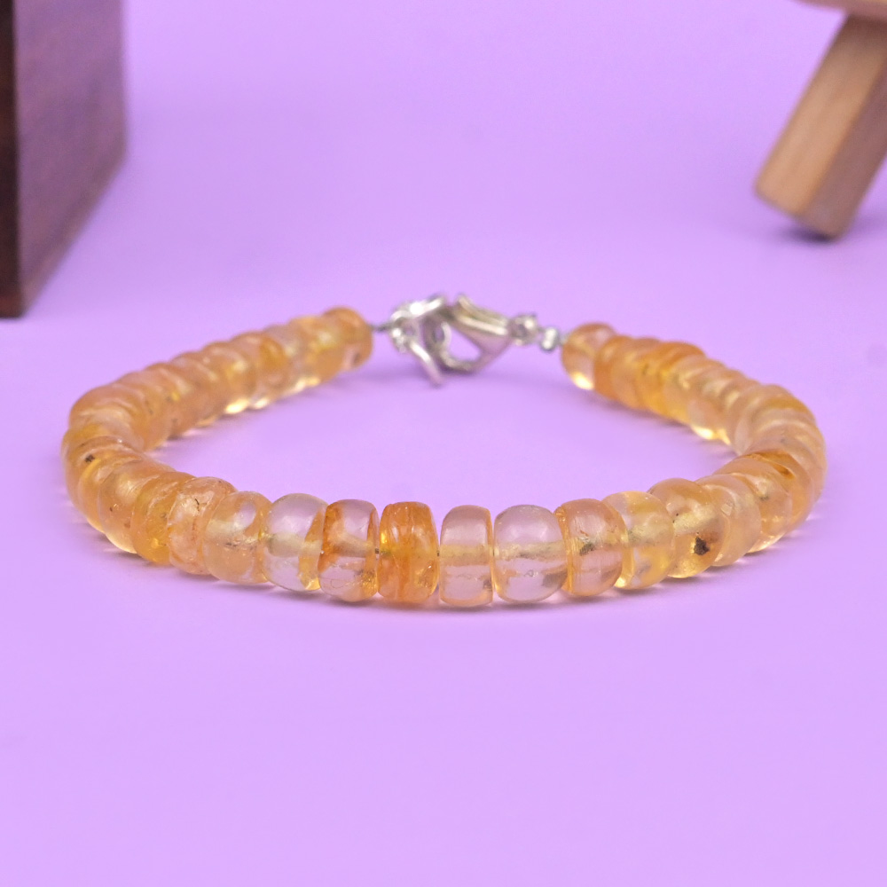 This Natural Amber Bracelet features smooth button-shaped beads in warm honey and golden tones. The beads show natural variations in shade and clarity, highlighting the organic character of amber. The bracelet is strung securely and finished with a clasp for comfortable daily wear.
