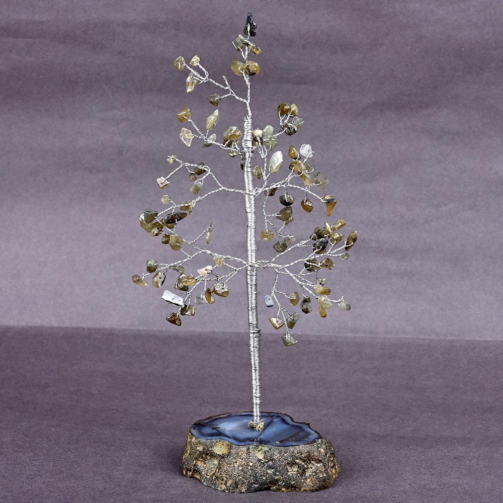Dual toned Tree made of natural uncut Labradorite gemstones and Agate gemstone base resonates spiritual qualities and promotes the awareness of living in present. It is ideal to place in North corner of the dwelling or office.