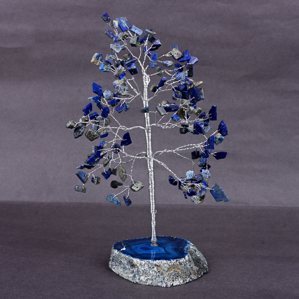 This tree handmade using uncut Lapis Lazuli gemstones and Agate gemstone base will pave way of serenity into your abode with its soft blue hue. Designed to enhance your décor and create a positive aura, the tree enhances divine energies and affectionate communication. It promotes healing energies of planet Saturn and enhances Ether element when placed in North corner.