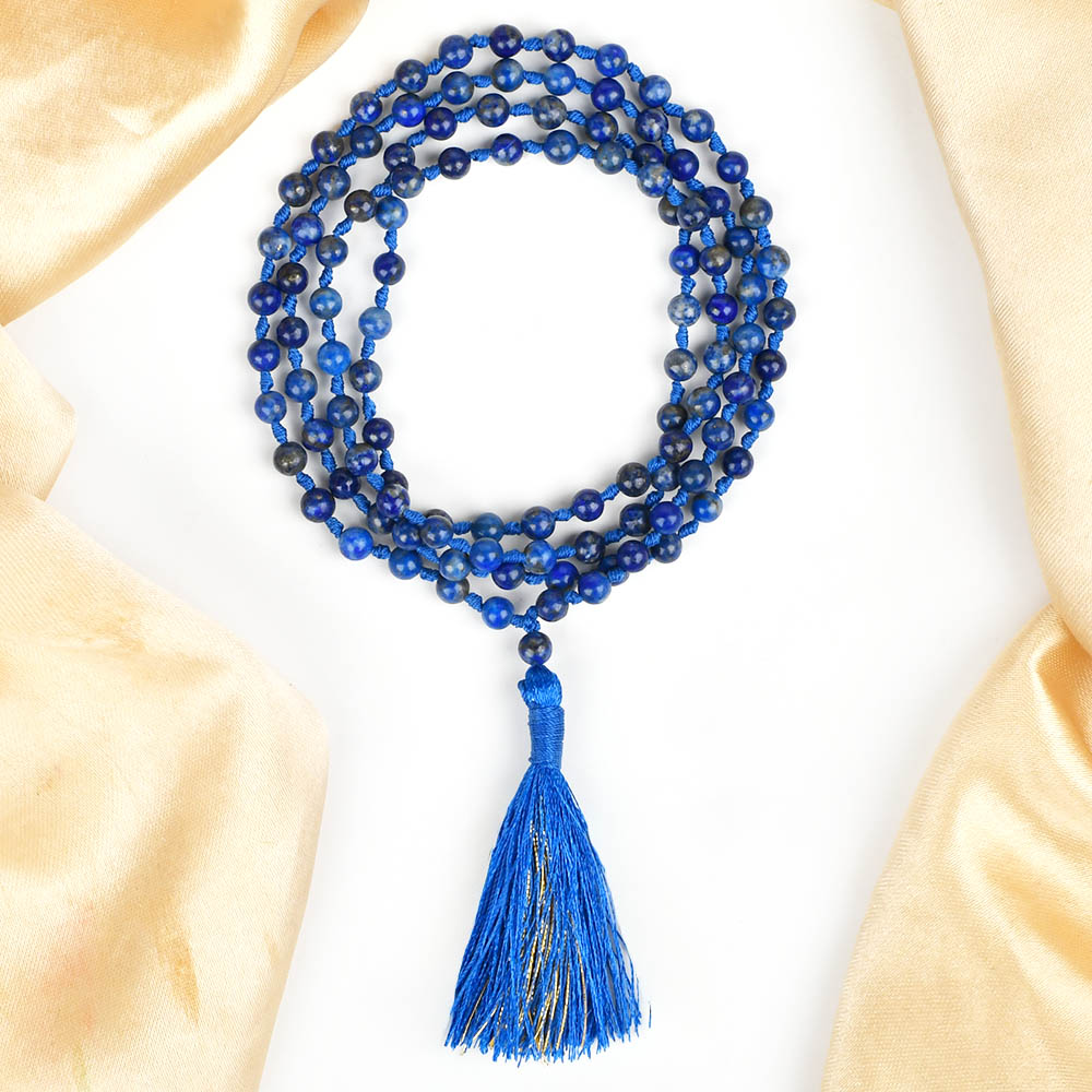 Known since ancient times as the stone of truth and wisdom, Lapis Lazuli awakens higher awareness and inner vision. Wearing this mala supports mental clarity, enhances communication, and strengthens your ability to express yourself with confidence and grace. It is especially beneficial during meditation and spiritual practices, helping quiet the mind and activate the Ajna (third eye) chakra. Ideal for seekers drawn to introspection and deeper understanding.