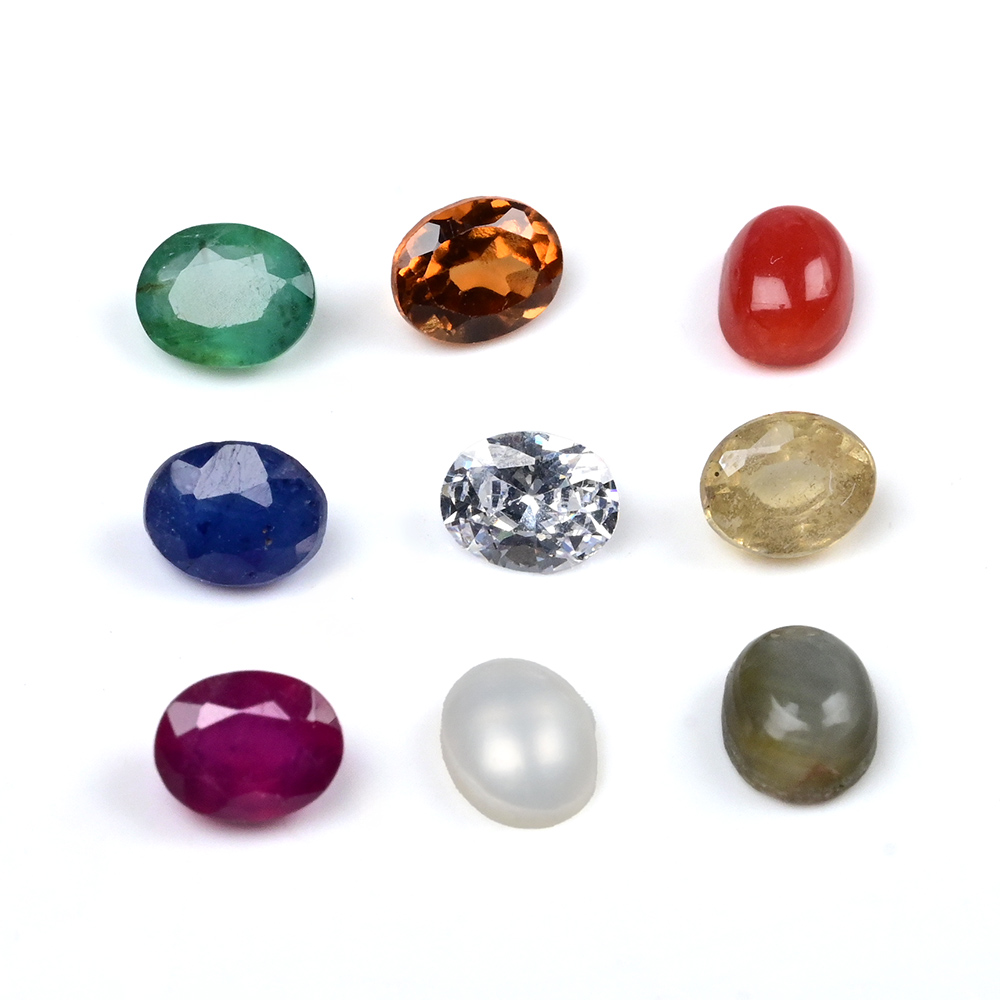 This set of shining Navratna gems stand for beauty, glitter and purity and power of the nine planets. You can use this for making your own ring/pendant.