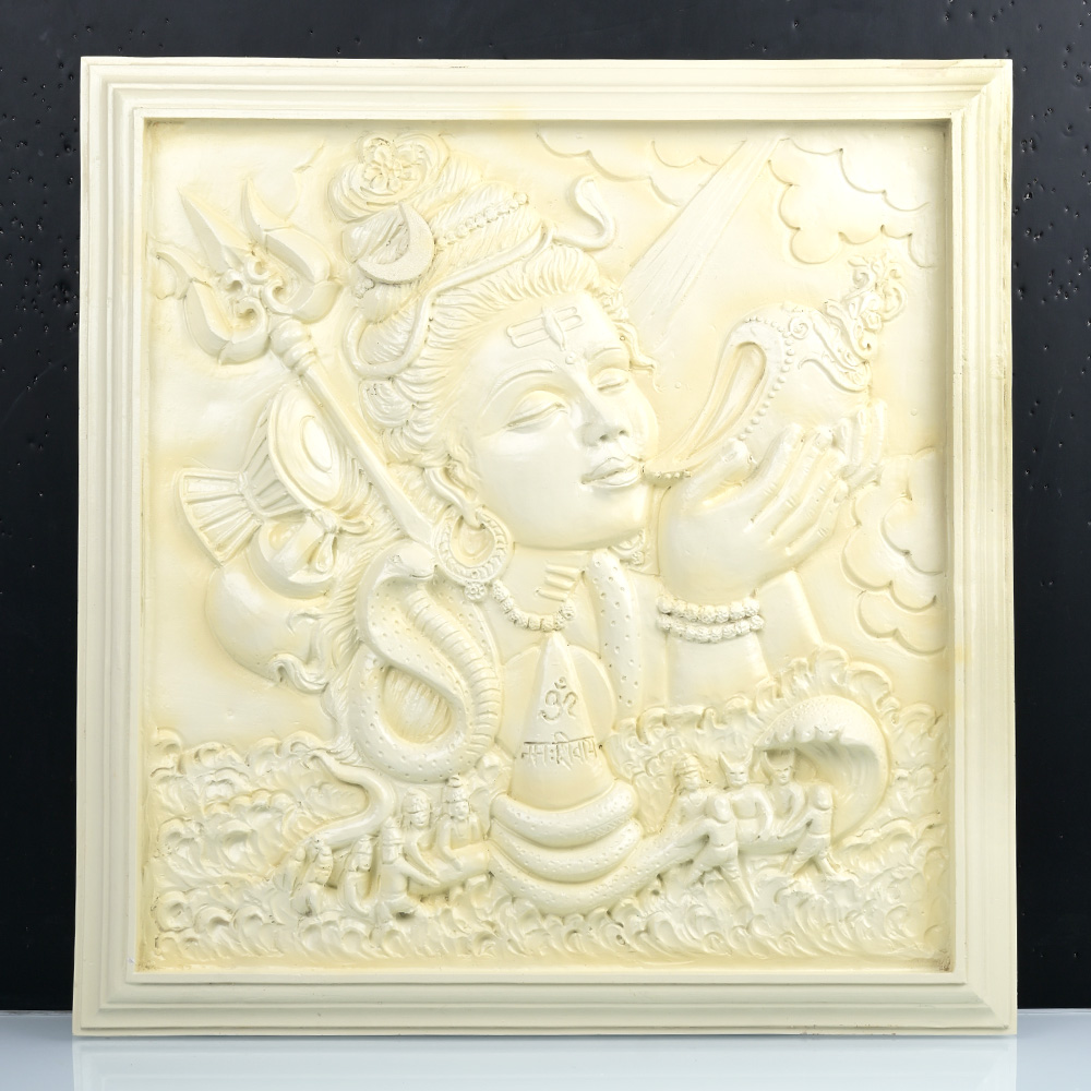 This breathtakingly beautiful Mural of Neelkantha Shiva is handmade by skilled artisans in C-forex which is unbreakable and easily washable.