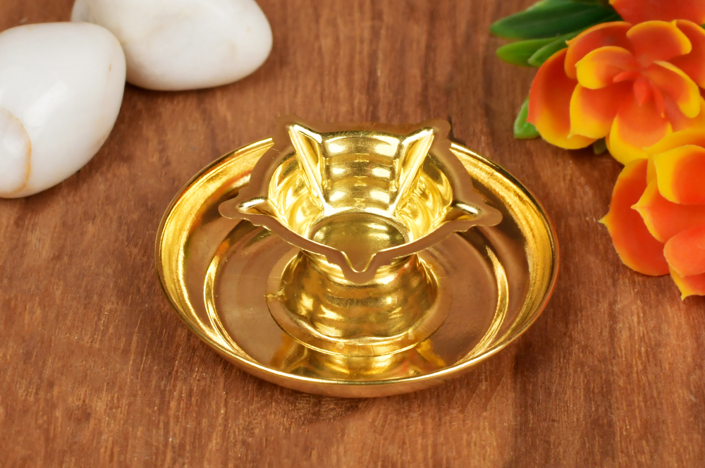Experience the profound spiritual blessings of our Panch Aarti Diya, where its five radiant flames symbolize the sacred elements of earth, water, fire, air, and ether. This exquisite fusion harmonizes your environment, imbuing it with uplifting energy, cultivating an atmosphere of spiritual elevation. It serves as a profound testament to your unwavering devotion and profound reverence. Enhance your worship with the Panch Aarti Diya's exquisite and reflective ritual. Gracefully position the diya upon the plate, adorning each tier with the essence of pure ghee or oil. As you ignite the diyas, offer heartfelt prayers and intentions, basking in the luminous glow that illuminates your sacred path. The Panch Aarti Diya with Plate is a sacred symbol, guiding your journey towards inner peace and divine connection.
