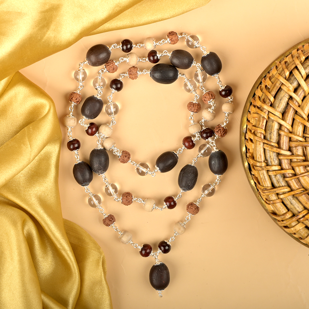 The Panch Bhoota mala unites the five forces that shape existence, helping you remain balanced in body, mind, and consciousness. It connects you with the elemental structure of creation so your thoughts and actions stay aligned with nature.