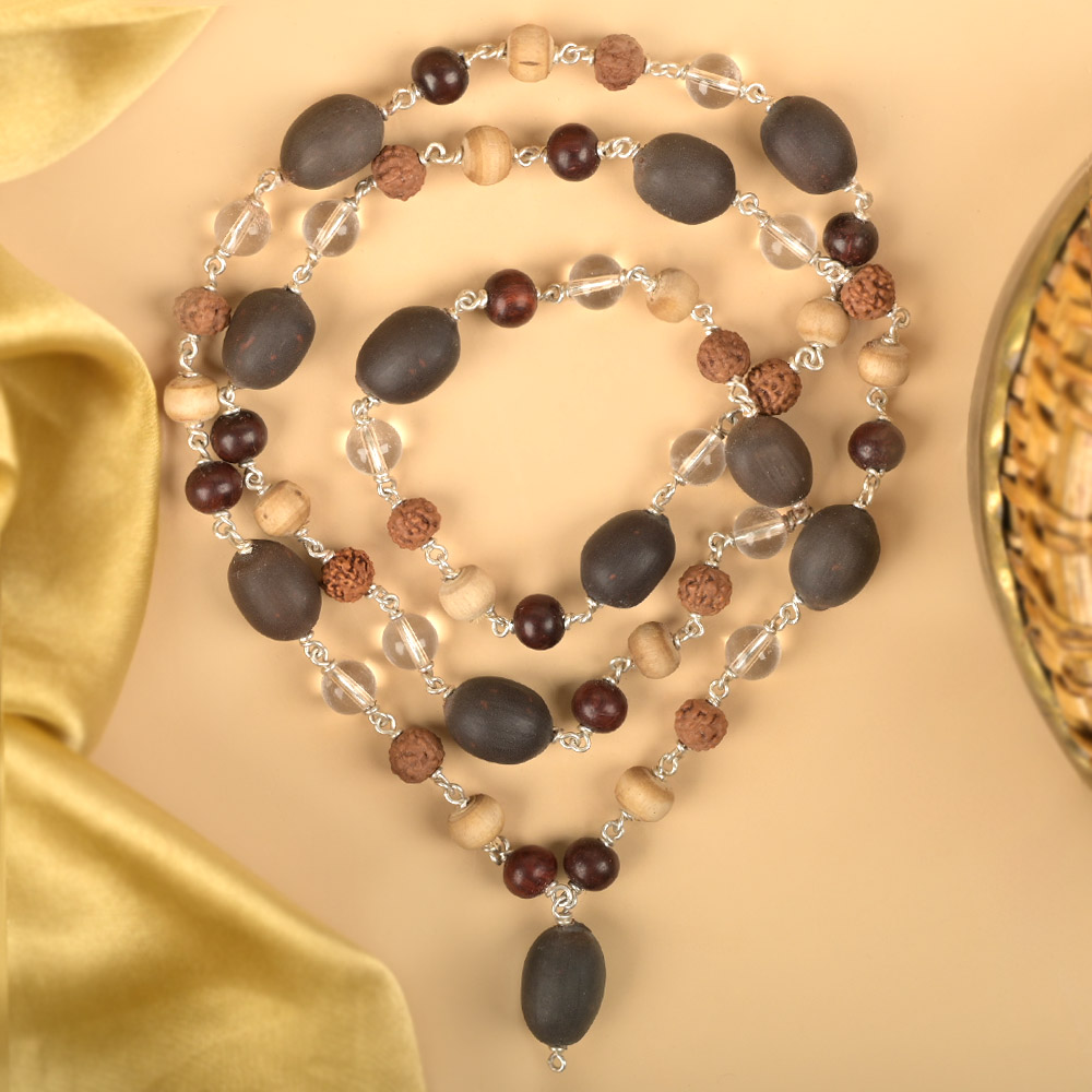 The Panch Bhoota mala unites the five forces that shape existence, helping you remain balanced in body, mind, and consciousness. It connects you with the elemental structure of creation so your thoughts and actions stay aligned with nature.