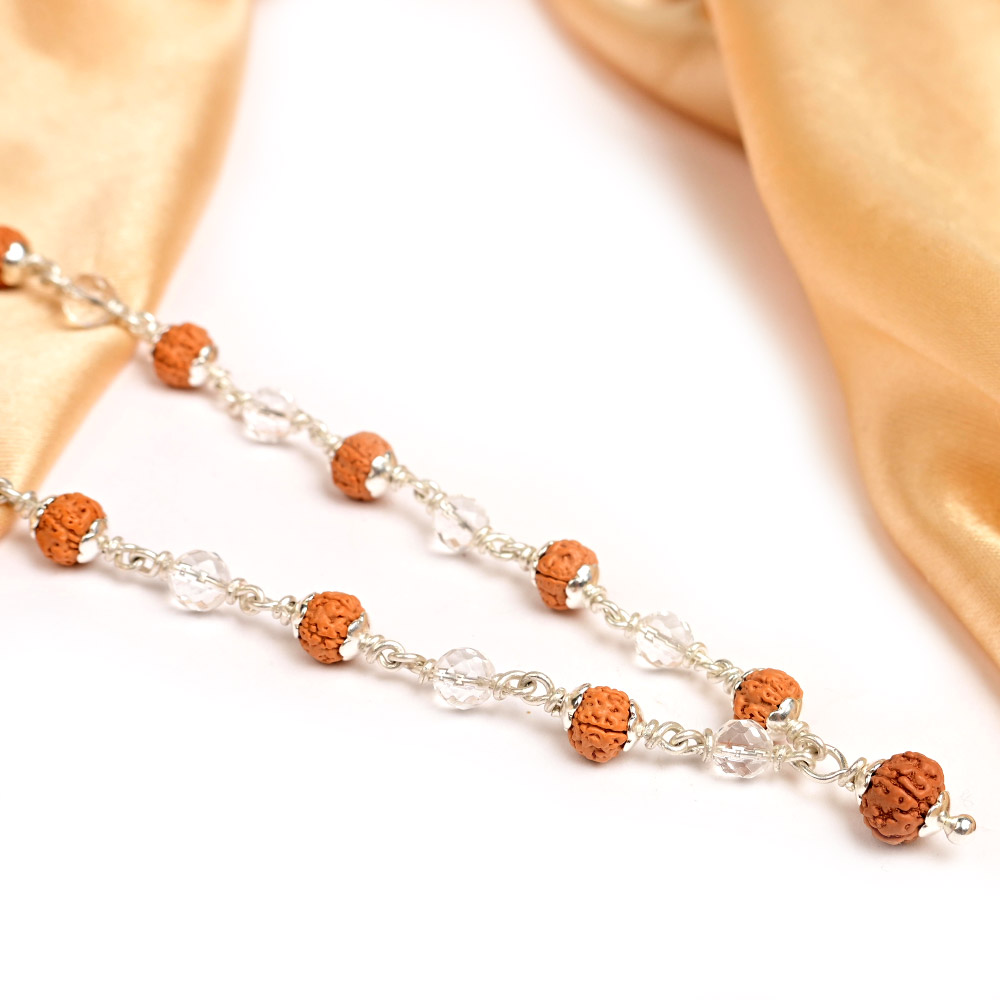 The Rudraksha beads used are of superior quality, with clearly defined mukhi lines and a natural, robust exterior. The Sphatik beads are precision-cut and polished to enhance brilliance and energetic clarity, making them both spiritually and visually striking.