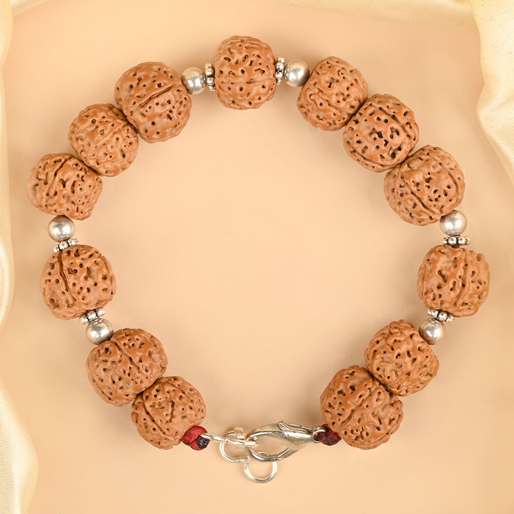 This bracelet is ideal for those who seek a spiritually aligned accessory for daily wear. It combines the grounding and mind-cleansing power of 5 Mukhi Rudraksha with the purifying and stabilizing influence of silver.