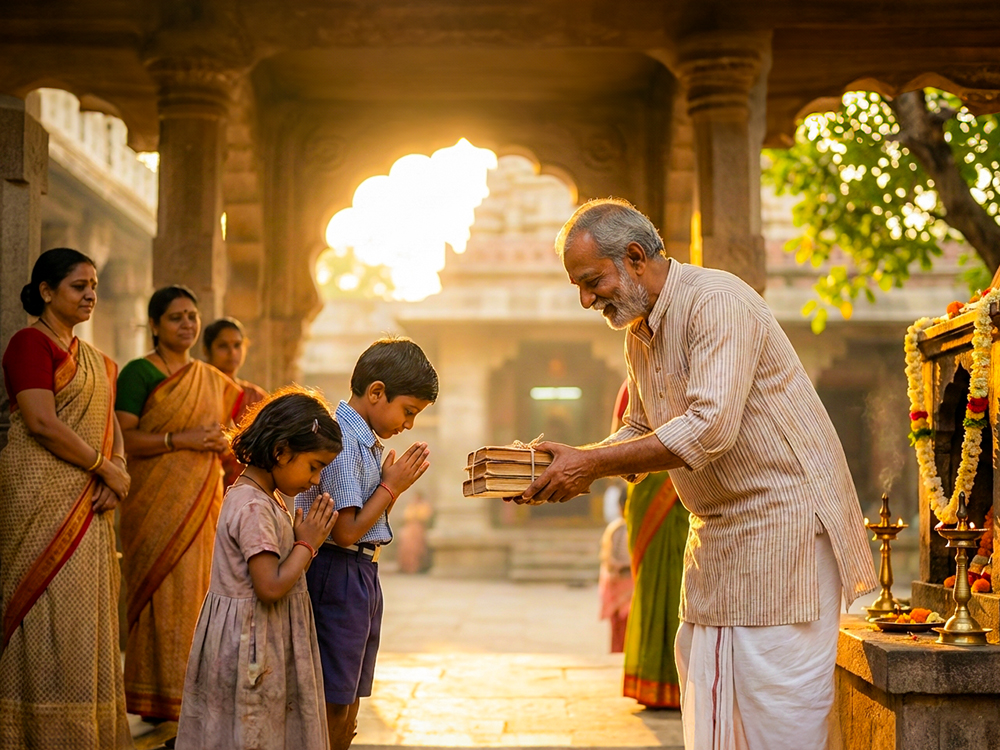 In Hindu religious observances, educational milestones, and charitable rituals, Pustak Daan is considered highly auspicious and meritorious. It forms an important part of the broader practice of daan, believed to generate punya (good karma) for the donor. By offering books to students, educational institutions, or the underprivileged, individuals fulfill their dharma, practice aparigraha (non-attachment), and engage in seva by serving the divine presence within all beings. Scriptures also link Pustak Daan to spiritual progress and favorable karmic outcomes across present and future lives, aligning it with the concept of punarjanma (reincarnation) and ultimate spiritual evolution.