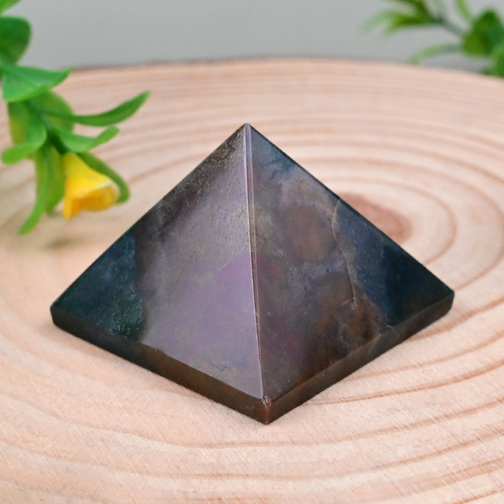 This Pyramid with polished finish is made in natural bloodstone gemstone. It energizes the place where it is kept with fire energy through the base and promotes grounding qualities of the gemstone. This is best placed is North-West corner of the dwelling or place of business. This pyramid charges large area of its surrounding and also eliminates stagnated negative energy force of the surrounding and helps brings balance and harmony.