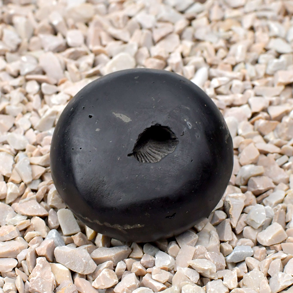 This divine Radha Krishna Murlidhar Chakradhari Shaligram Shila displays a smooth, dark black, rounded surface with a naturally formed central chakra-like impression. The shila’s prominent central cavity resembles the Sudarshan Chakra, radiating power and protection, while the delicate natural textures within resemble the flute (Murli), symbolizing Lord Krishna’s divine play and melody. The rounded form embodies the eternal bond of Radha and Krishna, representing divine love and bliss. The shila’s formation exudes grace and depth, making it a sacred and visually symbolic representation of Krishna in his Chakradhari and Murlidhar aspects.