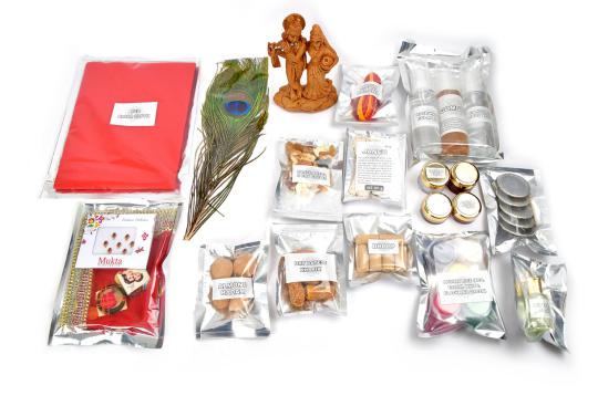 This specially prepared puja kit dedicated to Radha and Krishna would add more divinity and auspiciousness to your puja. Containing pure and finest puja ingredients, Radha Krishna idol and other items, the kit has been thoughtfully arranged considering all items needed to perform one elaborate puja or few regular puja. Each item are neatly assembled and labeled to ensure an easeful puja experience. The kit can also be used to perform puja during Krishna Janmasthami.