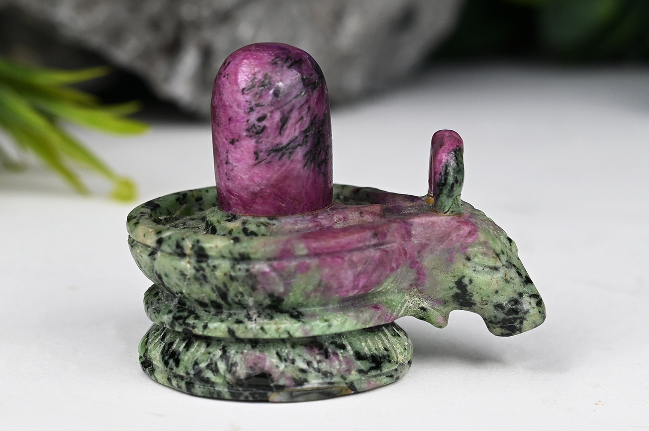 Shiva lingam made from a 100% natural ruby. This fine Idol is carved in single piece of pink and green ruby gemstone.