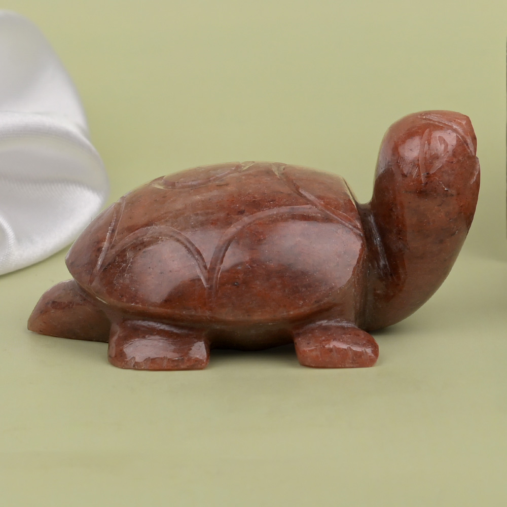 This earthy coloured turtle is sculpted from a single Red Aventurine stone that manifests desires. Kurma is one of the most important forms of Lord Vishnu. He had taken this form during the time of Samudra Manthan. Red Aventurine helps manifest desires, promotes endurance, strength, creativity and passion and brings success. A Kurma idol is generally placed at home/office or a store to attract support, stability, longevity, and peace. It to be placed such that Kurma mouth faces the West direction.