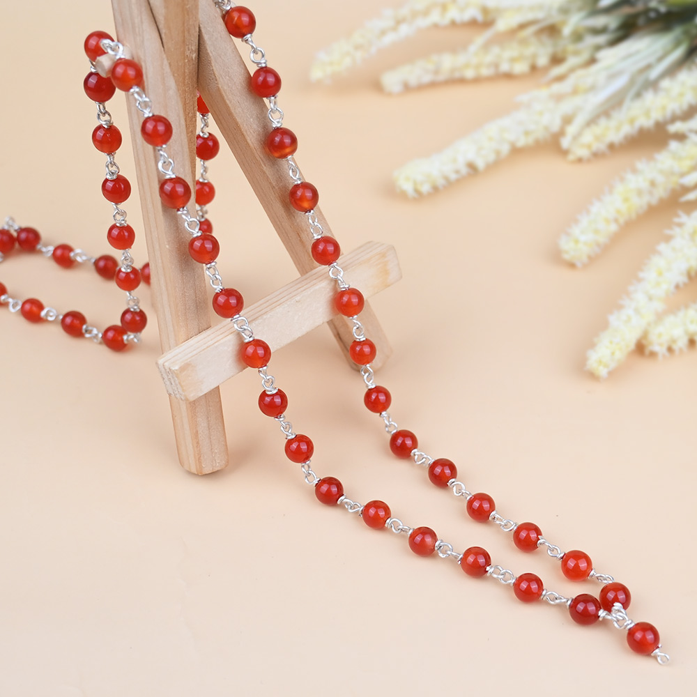 This stunning Red Carnelian Mala is crafted with round, smooth Carnelian beads, carefully linked with 925 sterling silver wire for a sophisticated and durable finish. The warm, red-orange glow of Carnelian radiates vitality and passion, while the silver wire wrapping enhances its divine appeal. The mala is meticulously designed for both spiritual and aesthetic significance, making it perfect for meditation, mantra chanting, or wearing as an elegant sacred accessory. The wire-link design ensures flexibility and strength, allowing for smooth energy flow and lasting durability. Benefits of the Red Carnelian Mala: Energizes and enhances confidence, motivation, and determination. Stimulates creativity and passion, making it ideal for artists and entrepreneurs. Strengthens focus and concentration, aiding in meditation and spiritual practices. Boosts physical energy and promotes vitality. Helps overcome procrastination, self-doubt, and fear.
