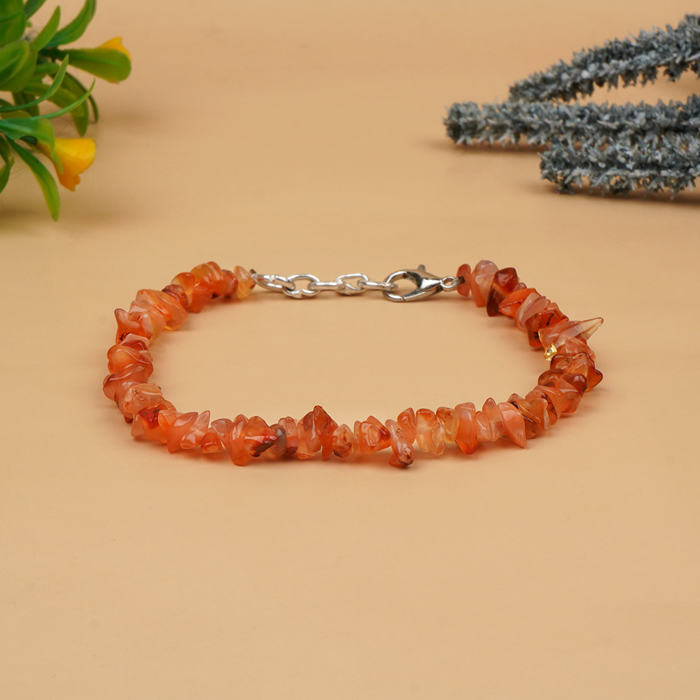 This vibrant bracelet features natural uncut Red Carnelian stones, each uniquely shaped and rich in fiery orange-red hues, strung securely with a metal clasp for a firm and adjustable fit. The raw finish of each bead preserves the stone’s natural energy, making it perfect for energizing your aura and enhancing vitality. Made from genuine Red Carnelian, a stone of courage, passion, and action. Benefits Boosts confidence, motivation, and creative energy. Promotes grounding, willpower, and emotional balance.