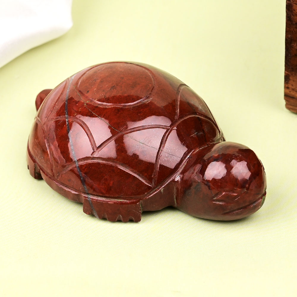 This Kurma (tortoise avatar of Lord Vishnu) carved from natural Tiger-eye gemstone to attract luck and stability and support in all aspects of life. Kurma is a manifestation of Lord Vishnu that signifies grounding, steadiness, stability, which is a very important aspect of planet Saturn, and thus the worship of Kurma helps balance the effects of the planet. Made in Tiger-eye, it brings good fortune, the flow of income, balance and optimism, hope, success and happiness. It is especially helpful for entrepreneurs beginning a new venture or professionals looking for career change and progress. It is to be placed in the office table/ work desk/living room with the mouth of the tortoise facing West direction.