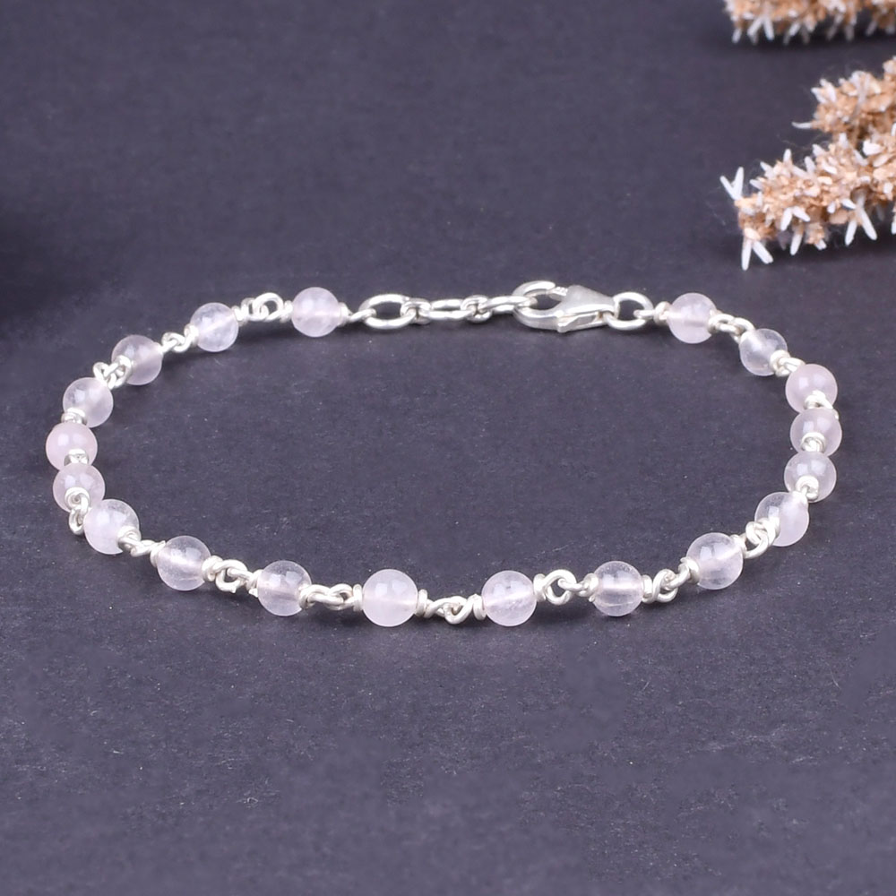Delicately handcrafted with small round Rose Quartz beads linked in 925 silver wire, this bracelet features a secure lobster clasp and an adjustable chain for a perfect fit. The minimal and graceful design makes it ideal for daily wear or gifting. This bracelet fosters emotional balance and self-worth, gently inviting the heart to heal and radiate unconditional love.