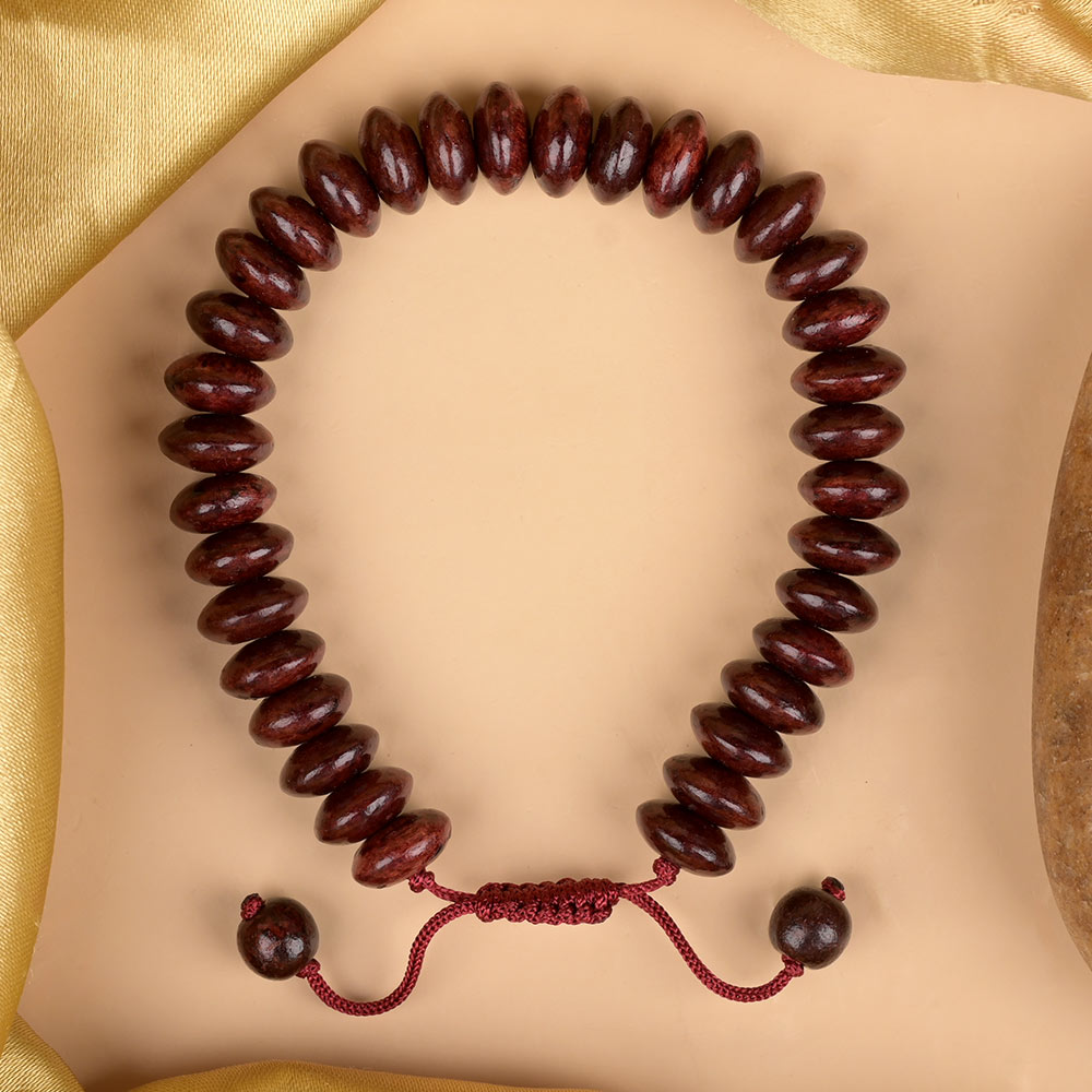 Beautiful bracelet made of elliptical Rosewood beads strung in red silk thread. Ideal for daily wear or spiritual practice, it promotes clarity, balances emotions, and supports inner peace with its grounding energy.