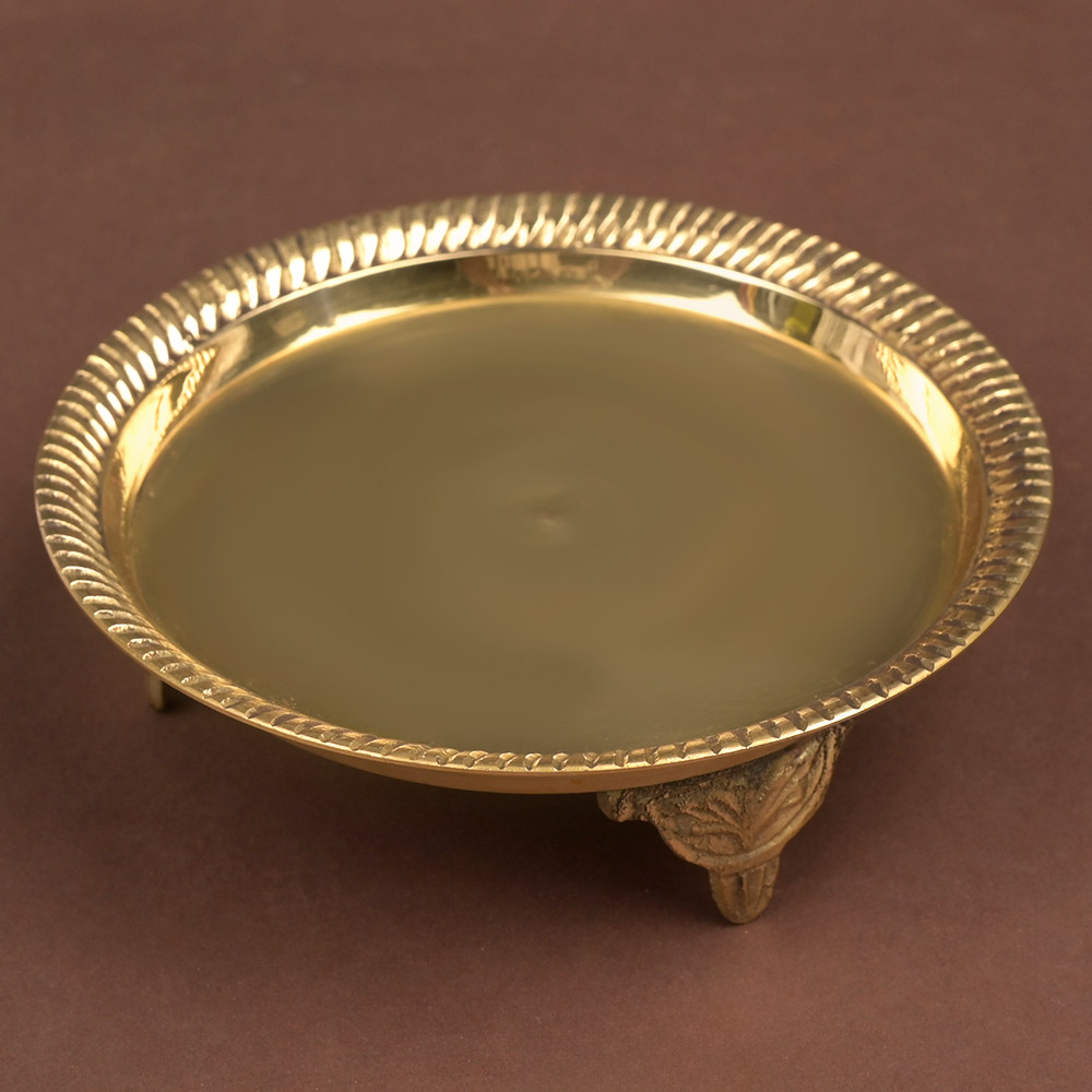 This Brass Thali on a pedestal is a must-have to use during Puja rituals and festivals, for respectfully keeping offerings of fruit, flowers, Naivedya for the Divine Deities. It can also be used as a permanent or temporary seat for a deity idol.