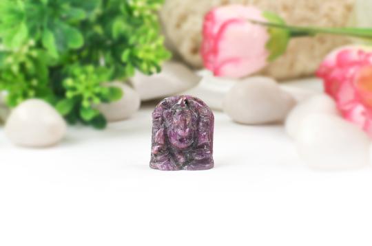 In this Idol, He is carved in Ruby stone to enhance the powers of the Sun. Ruby imparts prosperity, name and fame in political sphere. Ruby is beneficial to those who are aspirant to high office. It also blesses with creativity and good health.