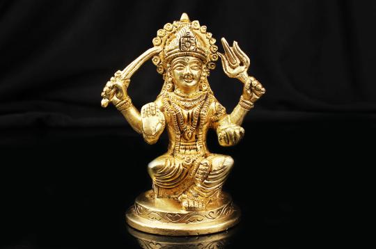 This artistically crafted Santoshi Mata brass idol radiates grace and divine blessings. Seated serenely, the goddess is depicted with a gentle expression, reflecting her essence as an emblem of love, contentment, forgiveness, and happiness. Sculpted in shining brass with intricate details, she inspires you to cherish family values, foster inner peace, and overcome challenges with determination.