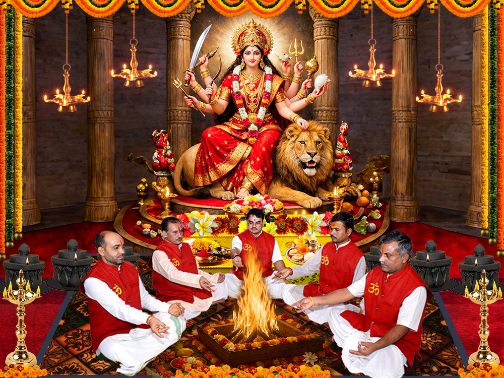 The powerful collective chanting of Durga Saptashati and Navaran Mantra generates intense protective and transformative energy that destroys negativity and attracts success.