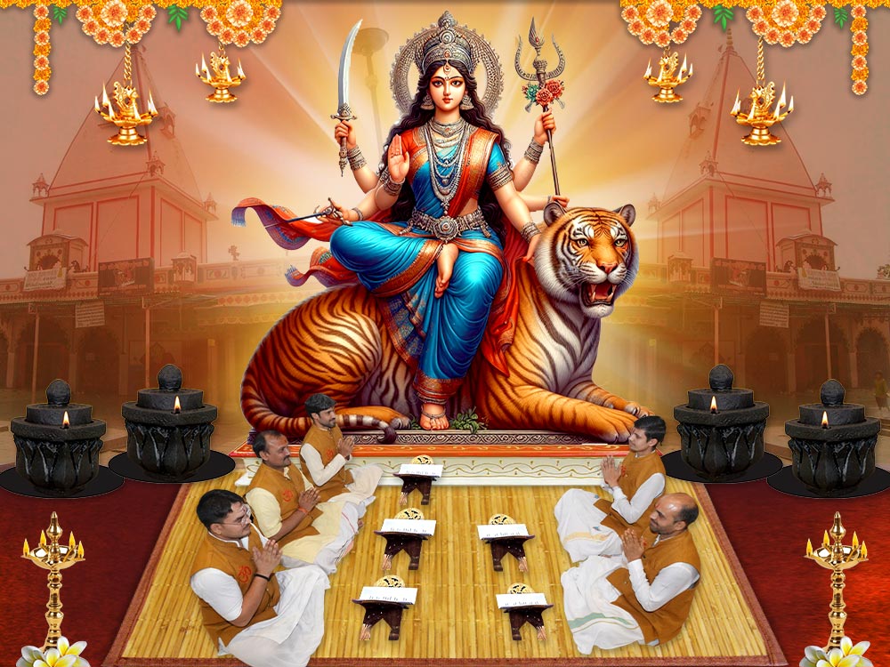 In the Markandeya Purana, Lord Brahma Himself stated that every human should recite Durga Saptashati as it offers protection. Reciting the Chandi Path blesses one with Vaikunth in the afterlife. The power and benefits of Sat Chandi Path and Yagya are mentioned in numerous Vedic scriptures such as Bhagavata Purana, Shrimad Devi Bhagwat, and many more. According to ancient sages, the verses of Durga Saptashati not only state the glories of the Mother Goddess but are also a formula or method. When these verses are sung or recited, they create powerful vibrations that destroy all negativities and bring immense auspiciousness.