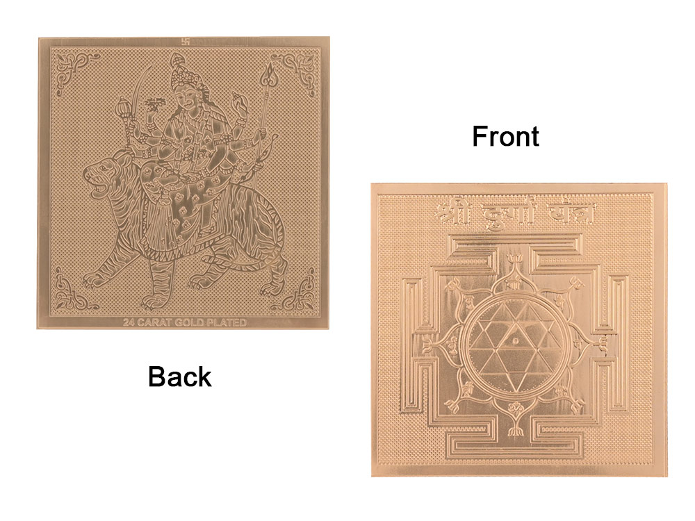 Exquisite Shree Durga Yantra Pocket Size, meticulously crafted to attract positive energies and provide unparalleled protection. The Shree Durga yantra has been meticulously designed to capture the essence of Mother Durga, the epitome of power and bravery. Take this compact yantra with you to enhance your spiritual connection and surround yourself with uplifting vibrations wherever you go. To worship, recite the Durga mantra in front of the yantra while offering flowers and incense (dhoop) and reflecting on your intentions in your daily routine.