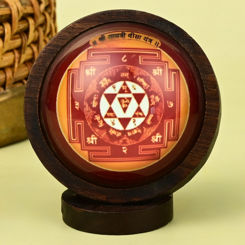 This Magnificent Yantra contains Shree Gayatri Bisa Yantra on one side and Gayatri Devi on the other side which can be placed on the Home/Office table/Car and Puja altar. An attractive gift item too.
