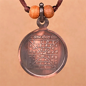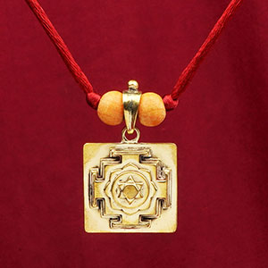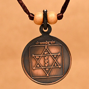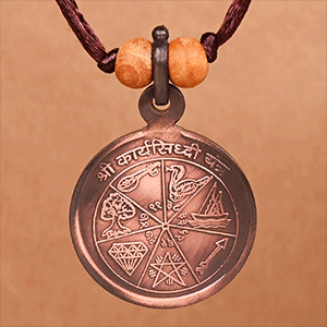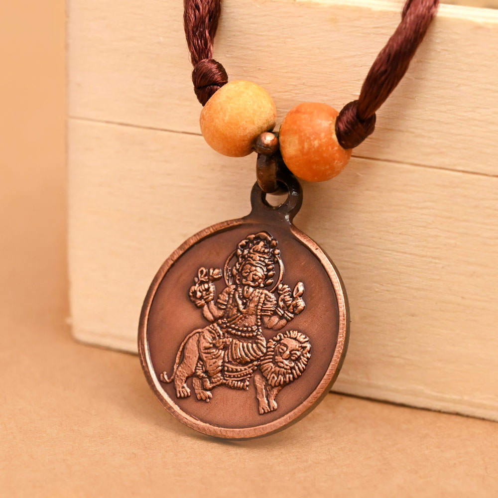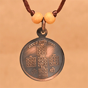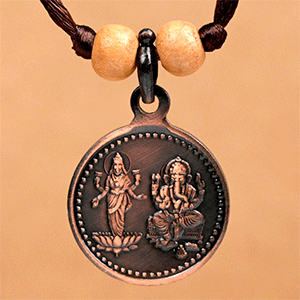 This magnificent locket with embossing of Mahalakshmi Yantra on one side and Goddess Mahalakshmi on other side is crafted in copper with antique finish. Mahalakshmi Yantra is worshipped for power of abundance and the goddess of fortune, both of which are equally necessary in the process of preservation.