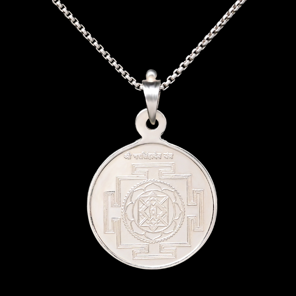 This magnificent locket has Shree Narasimhadev Yantra on one side and Lord Narasimha on other side to bless the wearer.