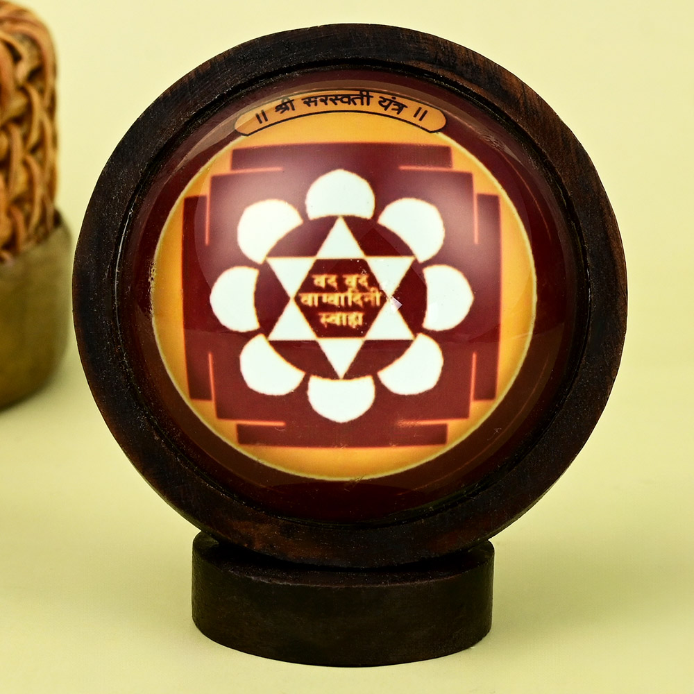 This Magnificent Yantra contains Shree Saraswati Yantra on one side and Saraswati Devi on the other side which can be placed on the Home/Office table/Car and Puja altar. An attractive gift item too.