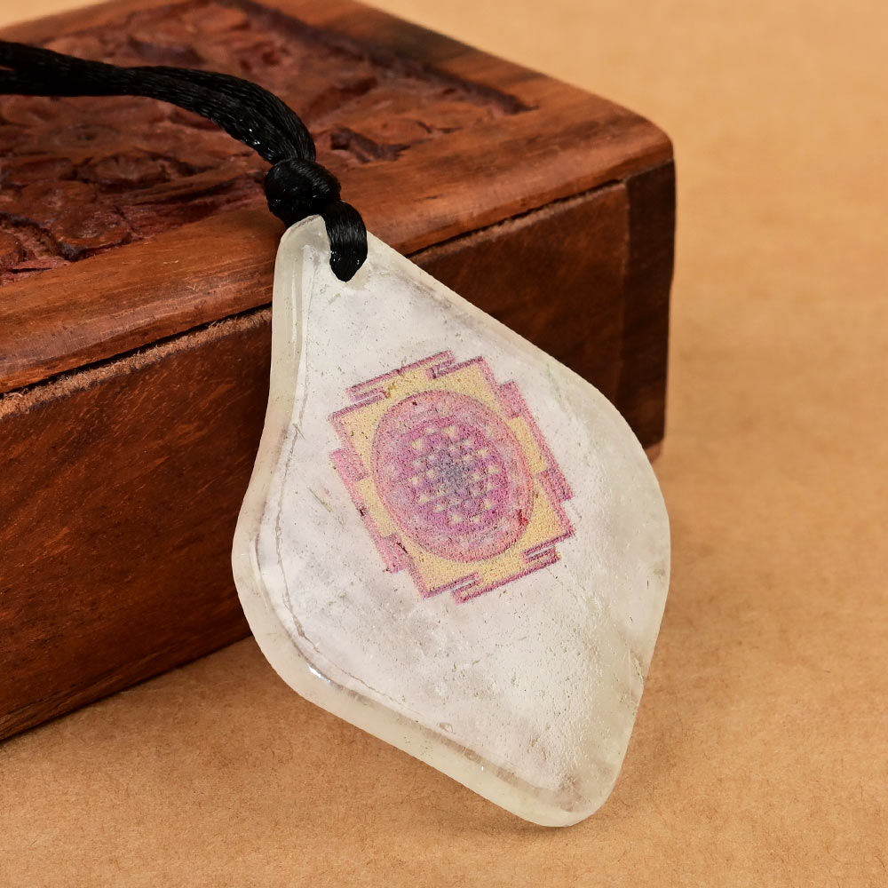 Gorgeous Pendant has Shree Yantra beautifully printed on Natural White Agate would look enticing on you. The Sleek pendant with smooth edging and washable print would also make an adorable spiritual gift. The beautiful combination of Shree Yantra and white Agate provides good fortune, strength, abundance, harmony, riches, fame and provides protection from obstacles and negativity. It also invites spiritual and materialistic comforts and success in all spheres of life.