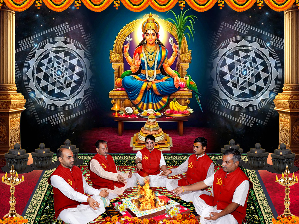 Sri Vidya Puja is not a ritual. It is a deep meditation. Sri Vidya Puja is the easiest ways to connect to the all-pervading existential energy. The Sri Vidya puja is performed with the Shree Yantra which is a mystical construction representing the Cosmos. It has subtle-energies polarized and embedded in it in the form of letters of the alphabet, each of which represents a chant, the attributed Deity, the carriage or vehicle on which the Deity sits, the herb or tree to which it belongs and the corresponding body part of the human beings which it controls. Therefore the Shree Yantra represents the whole Universal Energy and the energy in every animate and inanimate object. The Shree Yantra in turn also represents the human body with 43 major energy centers.